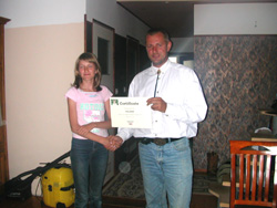 Ola nie mogła być z nami w dniu egzaminu, ale byliśmy u Oli kilka dni później i wtedy zrobiliśmy egzamin i wręczyliśmy Oli dyplom. |
