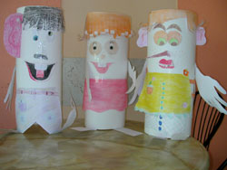 A oto gotowe kukły wykonane przez (od lewej): Karolinkę, Olę, Mrs.Wiktorię, Wojtka, Dominikę i Anię.