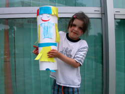 Dzisiaj robiliśmy papierowe kukły -PUPPETS. Wszyscy pochłonięci byli wymyślaniem sposobów na zrobienie włosów, ubrań i części ciała, które można było rysować bezpośrednio na kukle lub doklejać.
