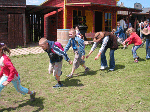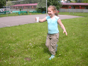 Inną konkurencją był wyścig tyłem. Tu też ciężko było biec. |