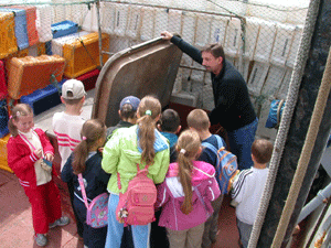 Właściciel kutra, pan Krzysztof, pokazał nam wszystkie urządzenia i wyjaśnił jak działają. |