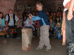 Bartek podczas wbijania gwoździa |