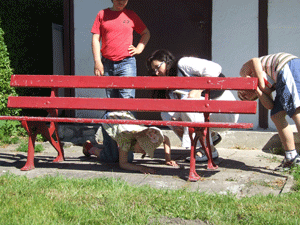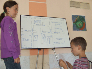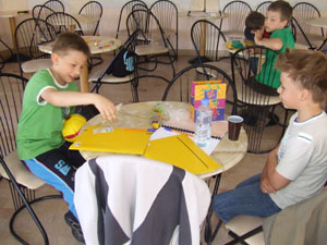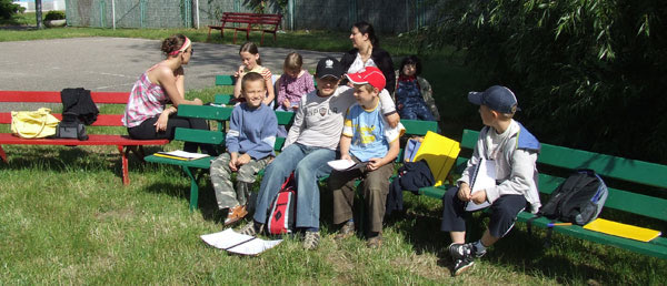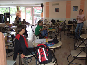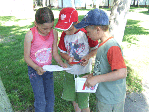 Podzieliliśmy sie na dwie drużyny. Każda drużyna dostała polecenie po angielsku jak dotrzeć do następnego polecenia. Niezbędne były słowniki. |