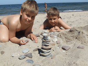 Mieliśmy konkurs na najwyższą piramidę z kamieni. Czy potraficie policzyć ile kamieni było w każdej z piramid? |